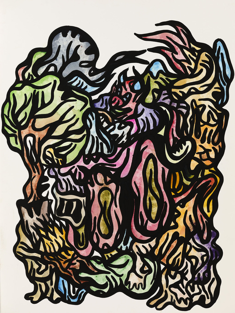 Gouache sur papier collé sur papier rigide marouflé sur toile -