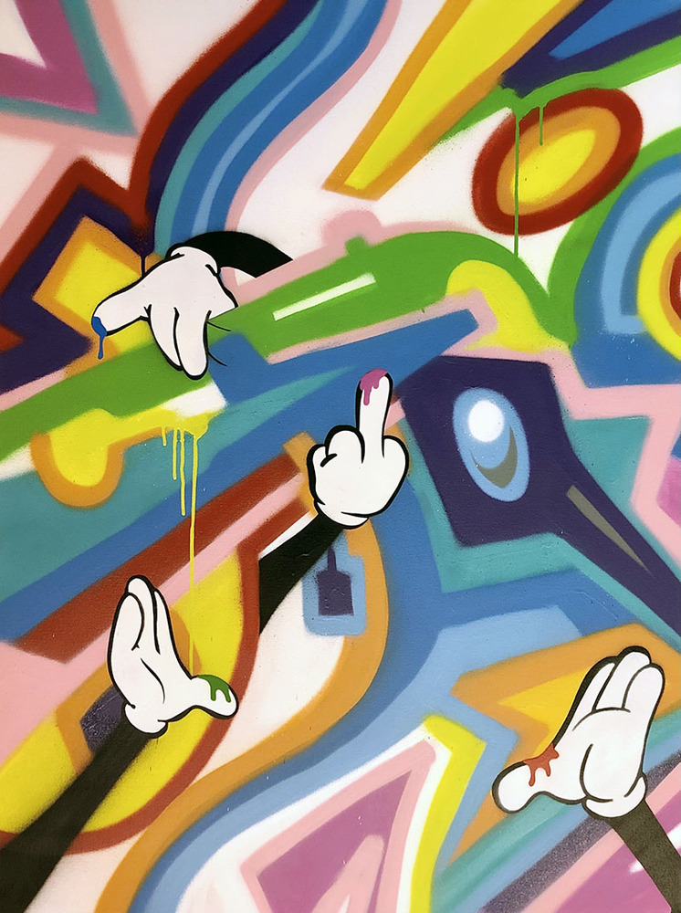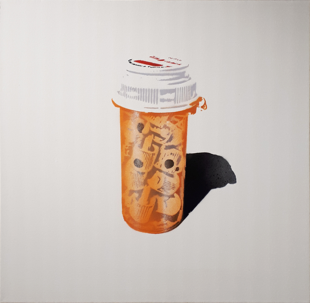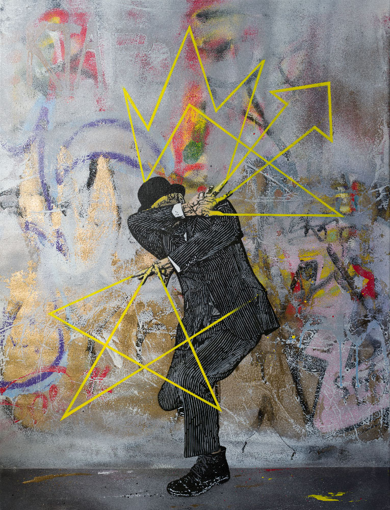Aérosol et pochoir sur toile