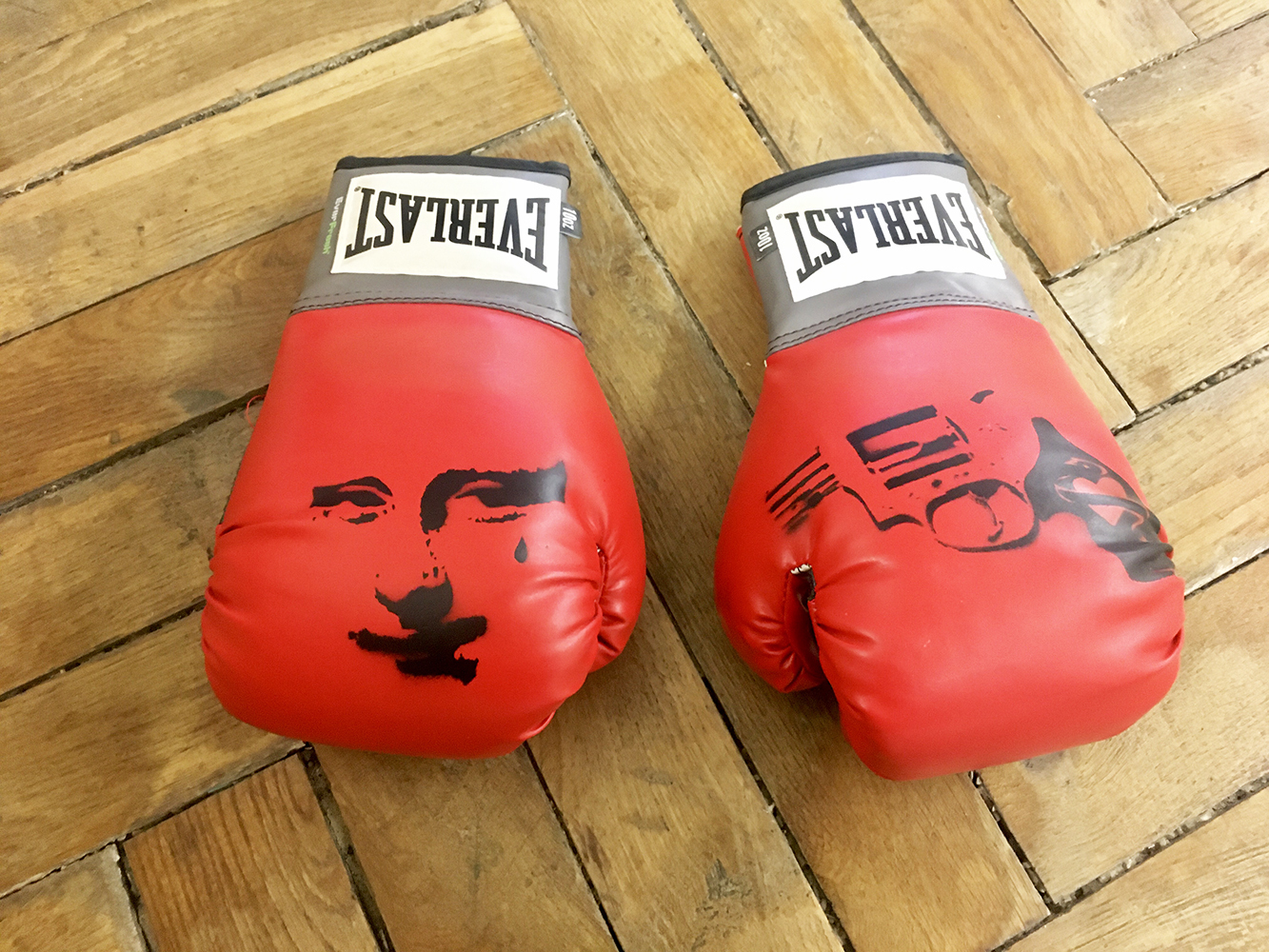 Pochoir original sur gants de boxe -