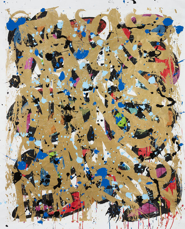 - sérigraphie et feuille d'or 22k sur billet de banque
