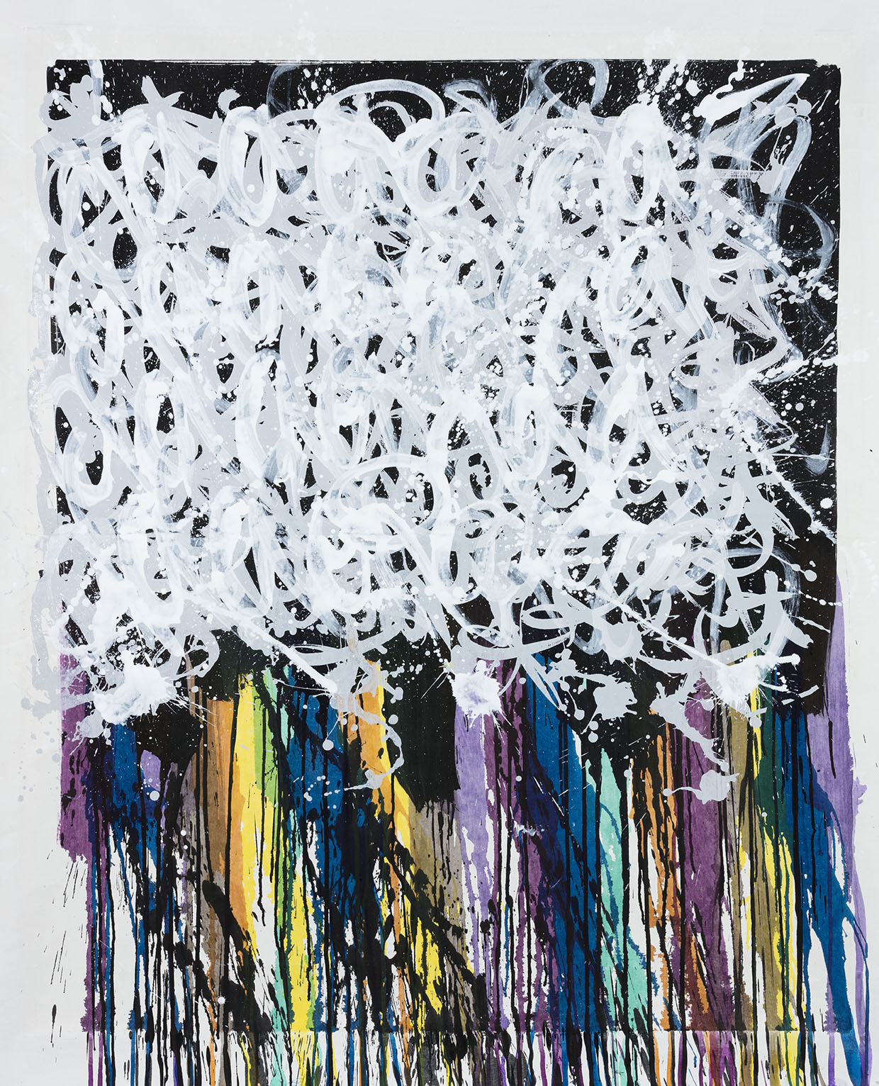 Acrylique et spray sur sérigraphie sur papier
