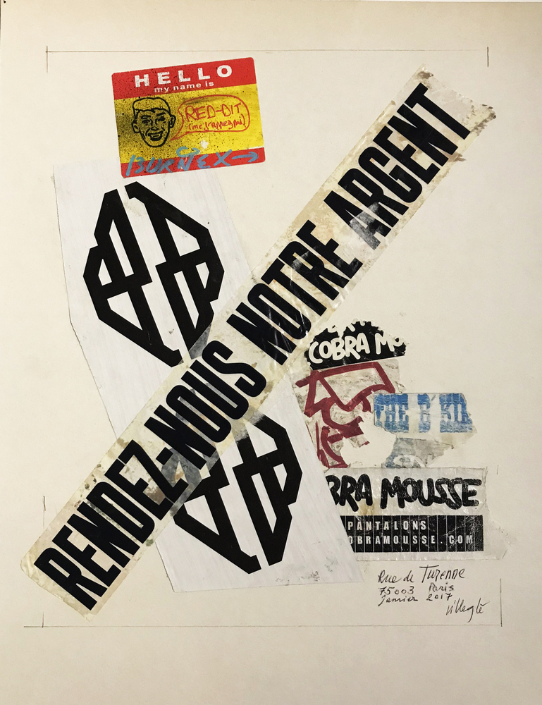 Collage et stylo à bille sur carton