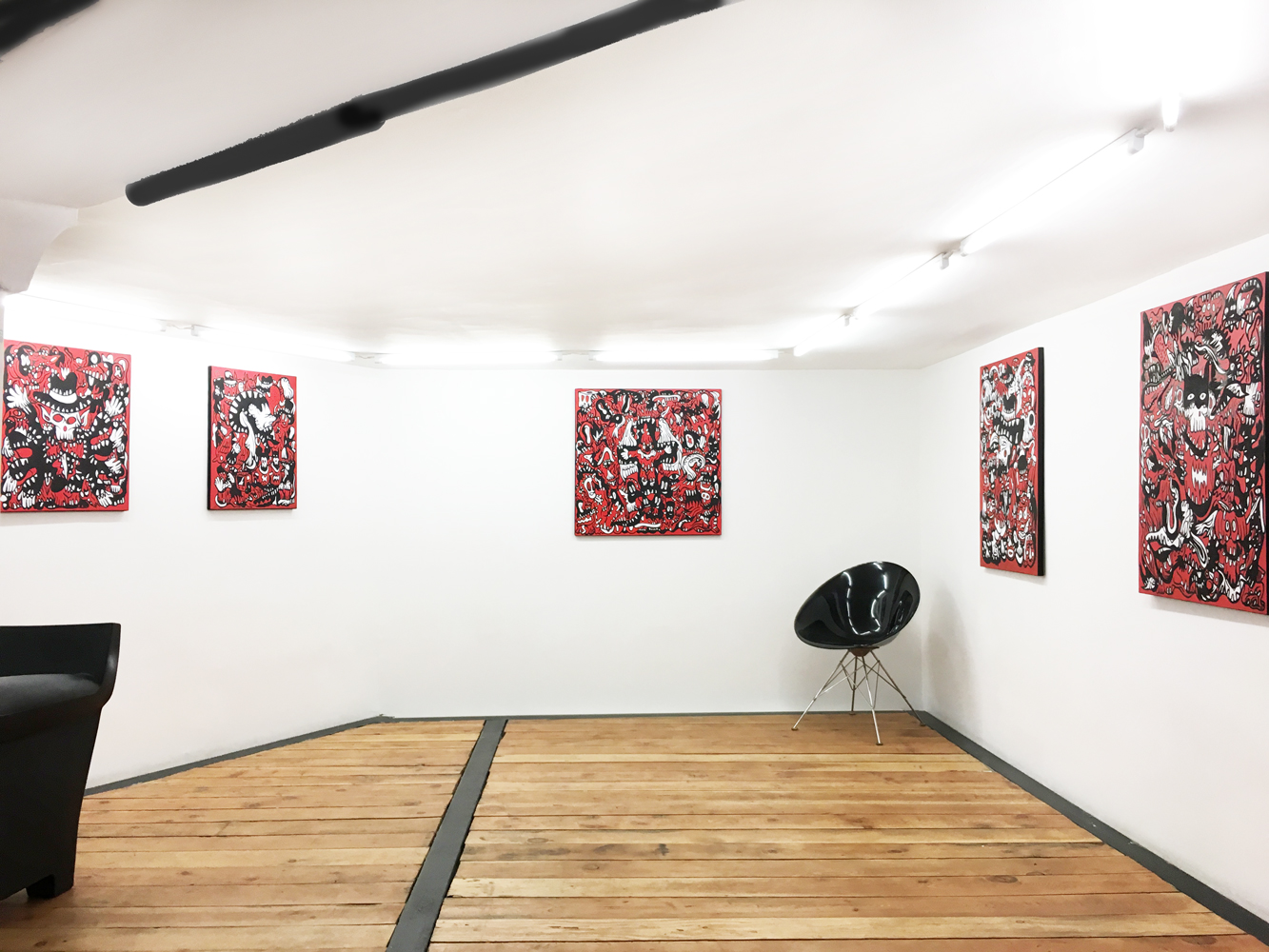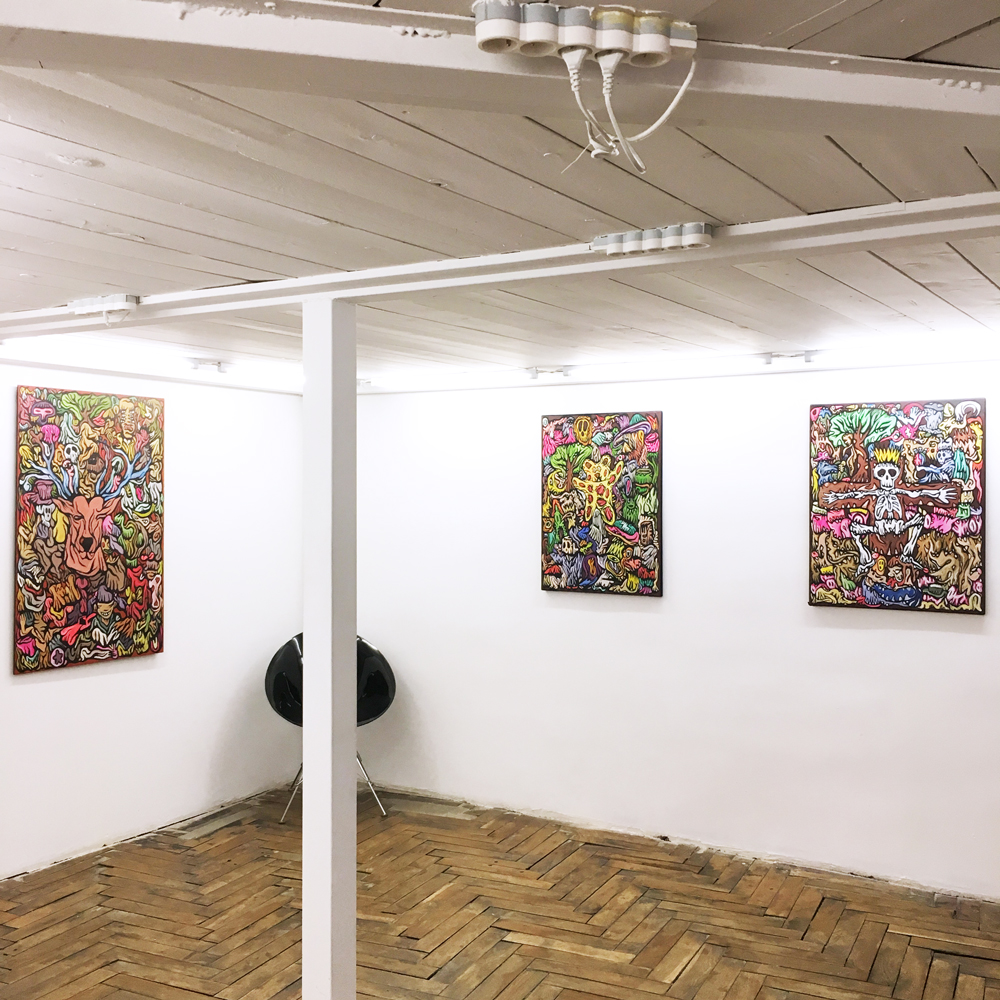 1er étage, gauche - (de gauche à droite) Freaky, Me and my area, Crucifixion, Story and mermaid, Free of life -