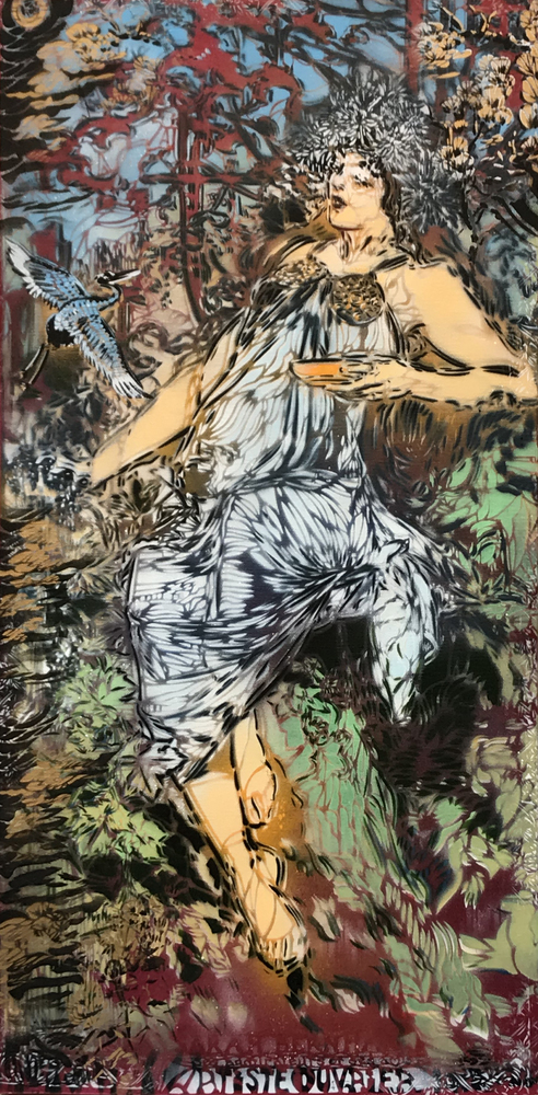 Artiste-OuvrierDame au héron d'après Mucha, 2019