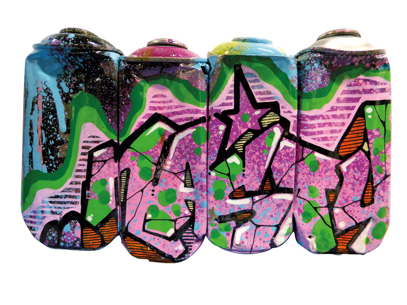 Aérosol et gouache sur bombes compressées